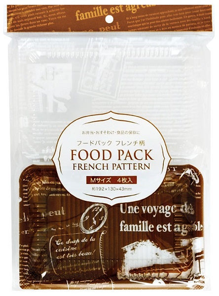 フードパック フレンチ柄 Mサイズ(19.2×13×高さ4.3cm) 4枚入 (100円ショップ 100円均一 100均一 100均)