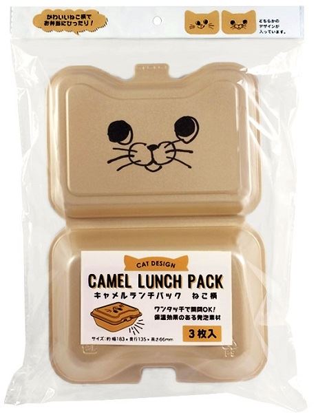 ランチパック キャメル ねこ柄 18.3×13.5×高さ6.6cm 3枚入 [柄指定不可] (100円ショップ 100円均一 100均一 100均)