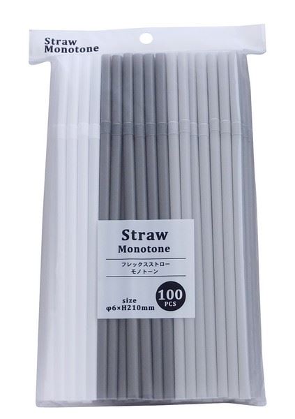 フレックスストロー モノトーン 21cm 100本入 (100円ショップ 100円均一 100均一 100均)