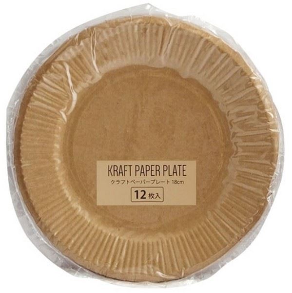 クラフトペーパープレート 18cm 12枚入 (100円ショップ 100円均一 100均一 100均)