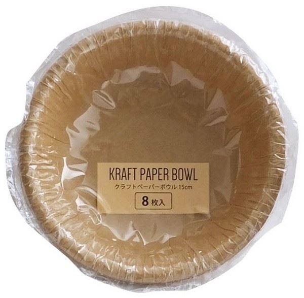 クラフトペーパーボウル 15cm 8枚入 (100円ショップ 100円均一 100均一 100均)