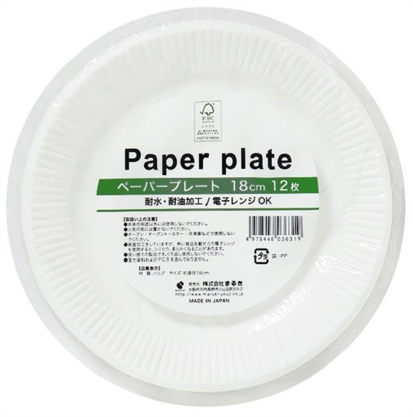 ペーパープレート 18cm 12枚入 (100円ショップ 100円均一 100均一 100均)