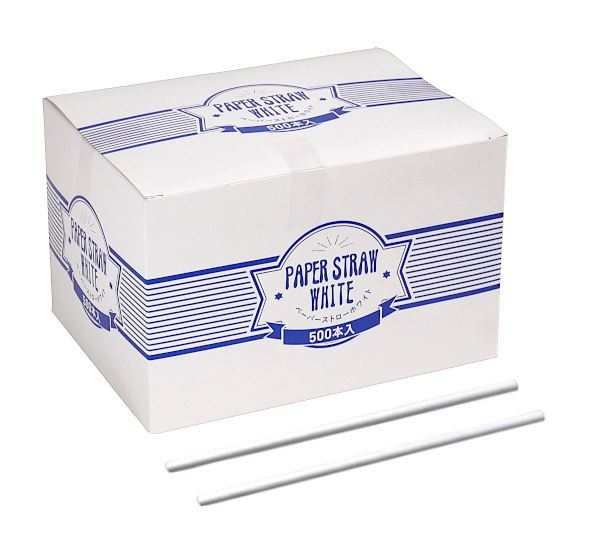 紙ストロー ホワイト 箱入 19.5cm 500本入