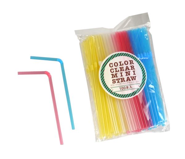 カラークリアストロー ミニサイズ(15cm) 100本入 (100円ショップ 100円均一 100均一 100均)