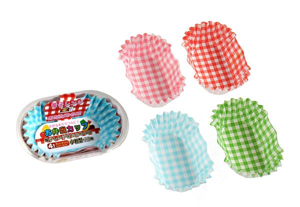 チェック柄のカラフルなおかずカップ です。
