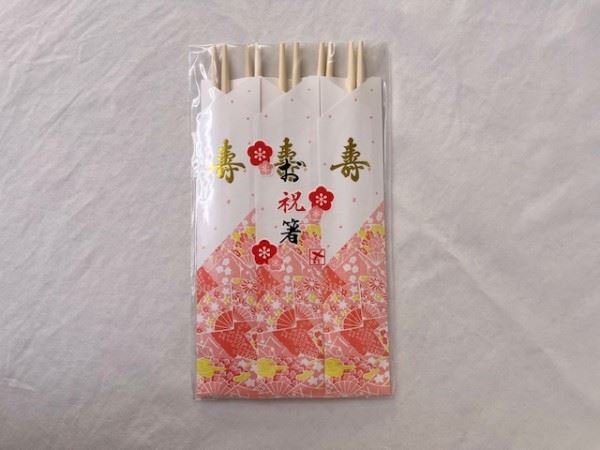 扇柄に「壽」の入った三つ折袋入り祝箸です。