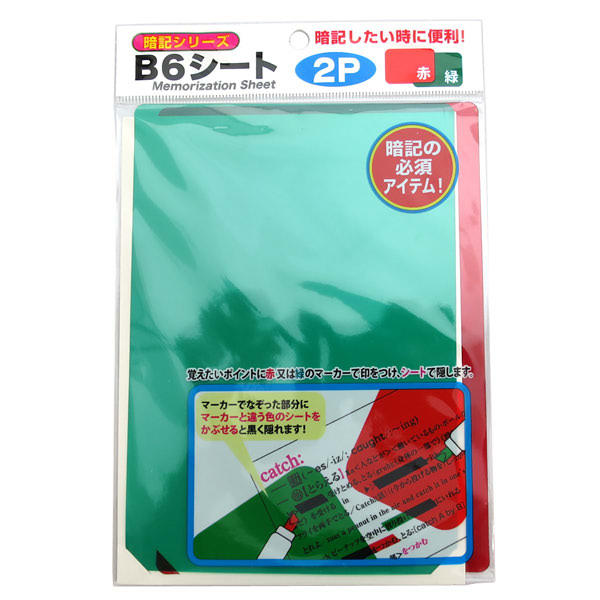 暗記シート B6サイズ 2枚入(赤・緑) (100円ショップ 100円均一 100均一 100均)