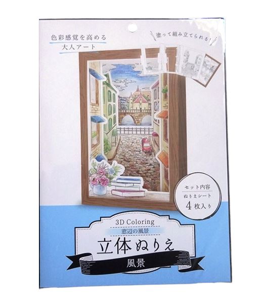 立体ぬりえ 風景 ぬりえシート4枚入 [柄指定不可] (100円ショップ 100円均一 100均一 100均)