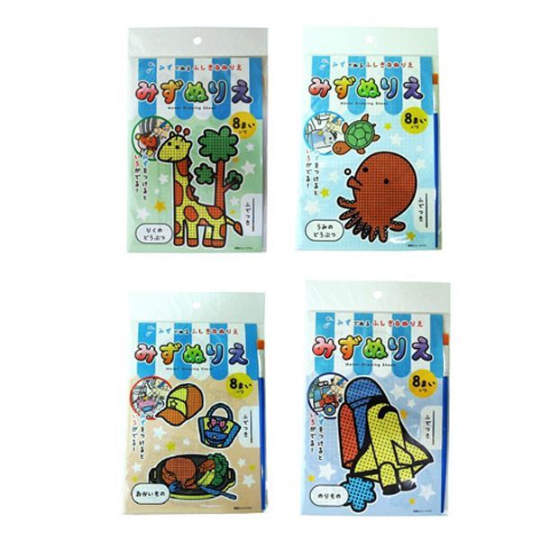 みずぬりえ 8枚入 筆1本付 [種類指定不可] (100円ショップ 100円均一 100均一 100均)