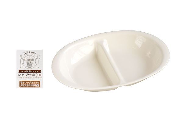 仕切り皿 レンジ食器 ポリプロピレン製 白 23.8×16.4×高さ3.8cm (100円ショップ 100円均一 100均一 100均)