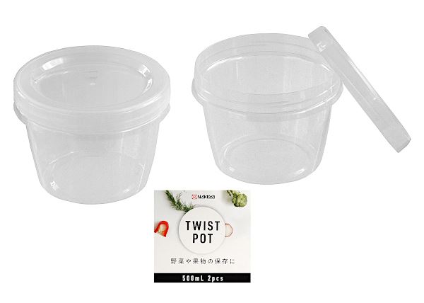 保存容器 ツイストポット クリア 容量500ml 2個入 (100円ショップ 100円均一 100均一 100均)