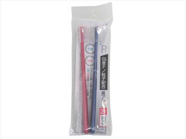 白金ナノ粒子配合歯ブラシ ふつう 17cm キャップ付 2本入 [色指定不可] (100円ショップ 100円均一 100均一 100均)