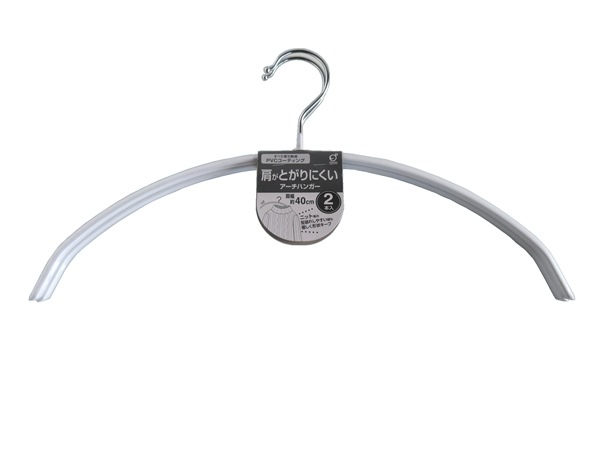 アーチハンガー PVCコーティング 肩がとがりにくい ホワイト 2本入 (100円ショップ 100円均一 100均一 100均)