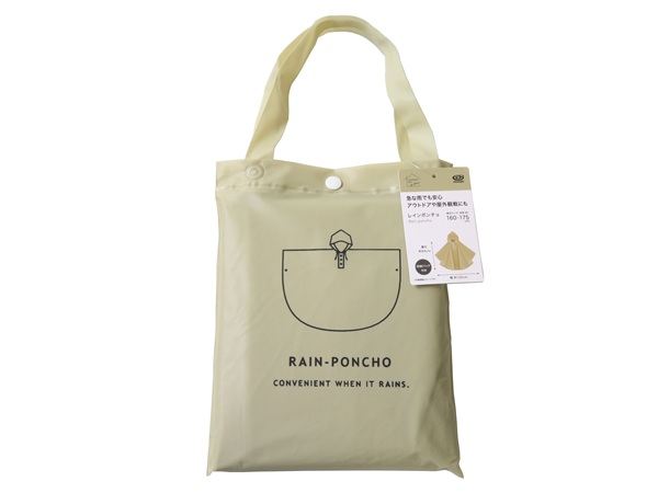 持ち運びや収納に便利なバッグ付きのレインポンチョです。