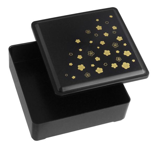 梅の花の箔押しが上品な小ぶりの重箱です。