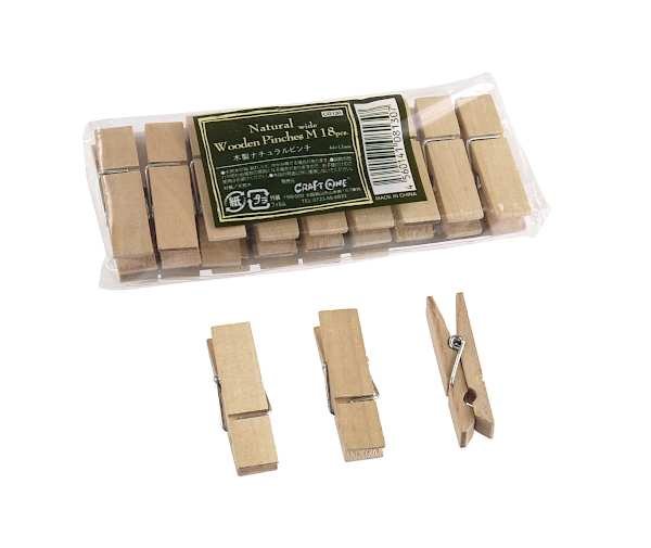 ナチュラルピンチ 木製 ワイドMサイズ(4.4cm) 18個入 (100円ショップ 100円均一 100均一 100均)