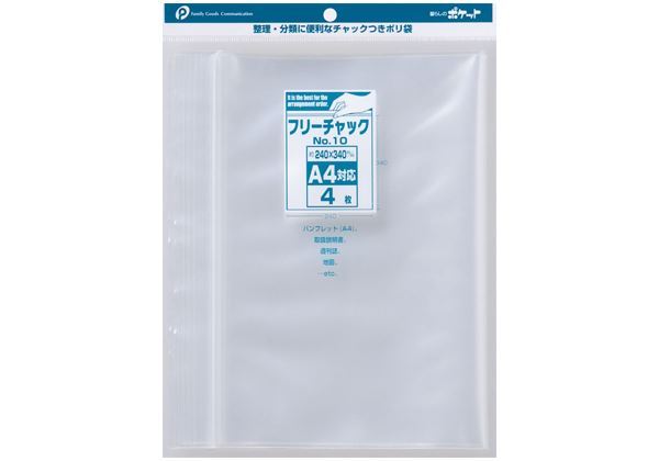 チャック付袋 NO.10 A4対応 24×34cm 4枚入 (100円ショップ 100円均一 100均一 100均)