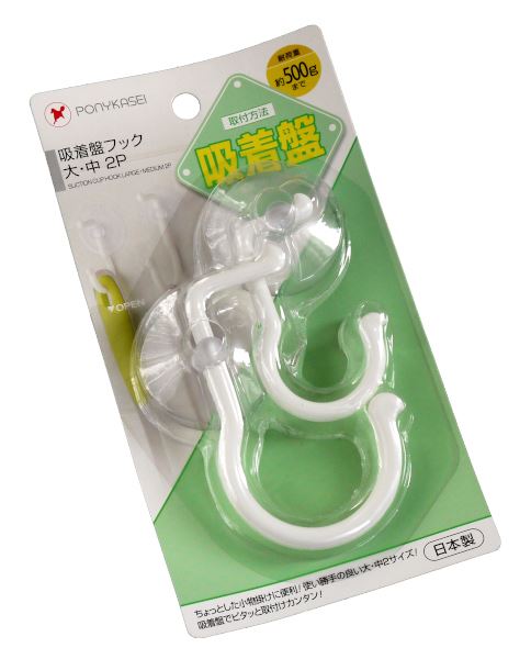 吸着盤フック 大/中 2個入 (100円ショップ 100円均一 100均一 100均)