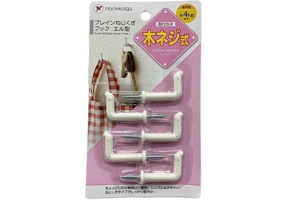 ネジくぎフック プレイン 木ネジ式 L型 1×2.5×奥行4.5cm 5個入 (100円ショップ 100円均一 100均一 100均)