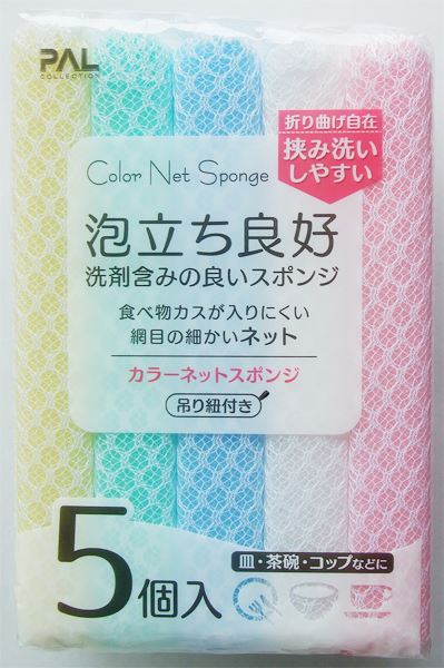 ●品名・カラーネットスポンジ 吊り紐付 5個入