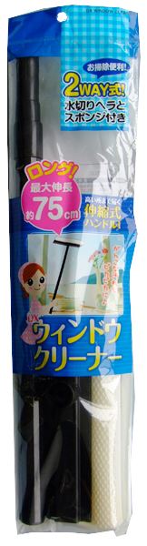 2WAYウィンドウクリーナー ヘラ&スポンジ付 伸縮式ハンドル 最大伸長75cm