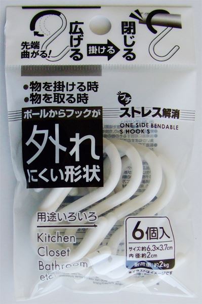 先端曲がるSフック 小(6.3×3.7cm) 6個入 [色指定不可] (100円ショップ 100円均一 100均一 100均)
