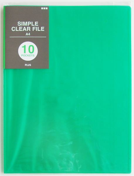 PLUSシンプルクリアファイル A4 グリーン 10ポケット