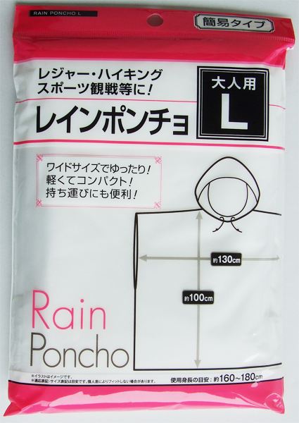 レインポンチョ 大人用L(160~180cm) [色指定不可] (100円ショップ 100円均一 100均一 100均)