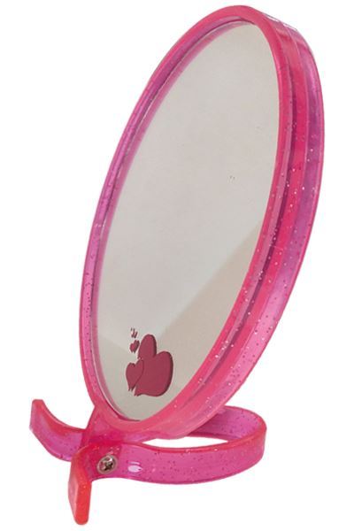 ハンド&スタンドミラー 丸型 Heart Lovenプリント 15.3×24cm (100円ショップ 100円均一 100均一 100均)