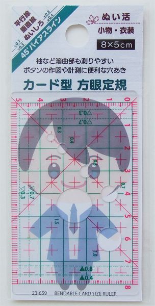●品名・ぬい活カード型方眼定規8X5cm 釦穴