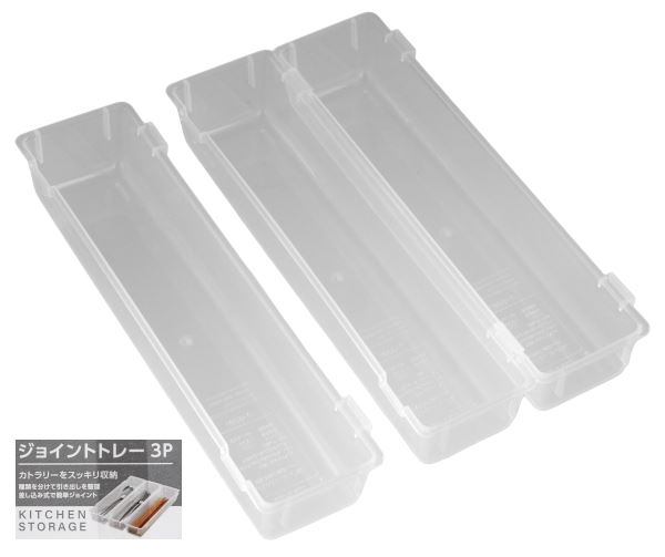 ジョイントトレー クリア 6.8×26×高さ4.2cm 3個入 (100円ショップ 100円均一 100均一 100均)