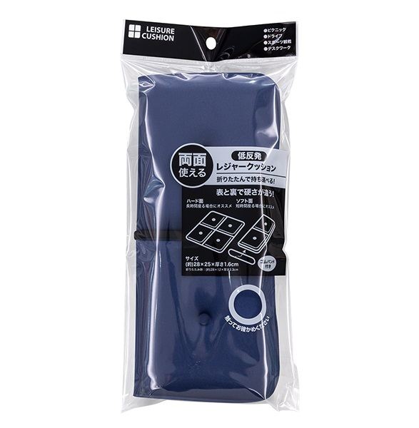 レジャークッション 低反発 ネイビー 28×25×厚さ1.6cm