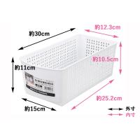 収納バスケット 引き手付 スリム(15×30×高さ11cm) ホワイト