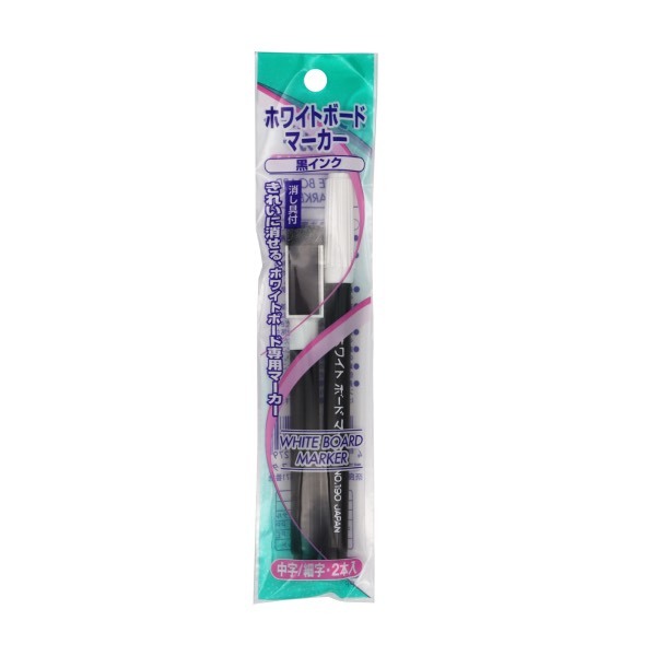 ホワイトボードマーカー 黒 中字/細字 2本入 消具付 (100円ショップ 100円均一 100均一 100均)