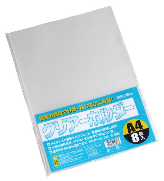 クリアーホルダー A4サイズ対応 31×22cm 8枚入 (100円ショップ 100円均一 100均一 100均)