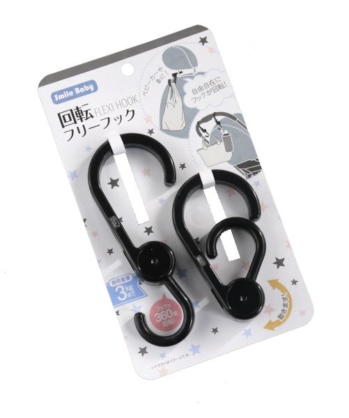 回転フリーフック ブラック 13cm 2個入 (100円ショップ 100円均一 100均一 100均)