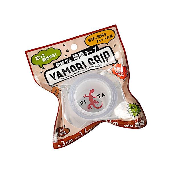 剥がせる両面粘着ゲルテープ ヤモリグリップ 透明 幅3cm×長さ0.6m (100円ショップ 100円均一 100均一 100均)
