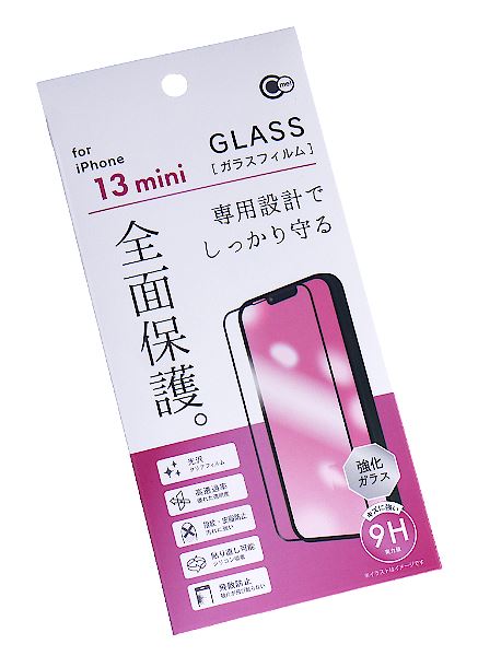 iPhone13mini用全面保護ガラスフィルム (100円ショップ 100円均一 100均一 100均)