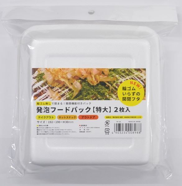 フードパック 発泡スチロール製 特大サイズ(19.2×19×高さ3cm) 2枚入 (100円ショップ 100円均一 100均一 100均)