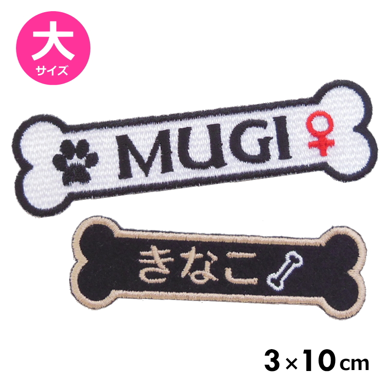 ◆オーダー品◆オーダーネームワッペン(骨型・大サイズ:3cm×10cm)【犬 ハーネス わんちゃん ユリウス ボーン】