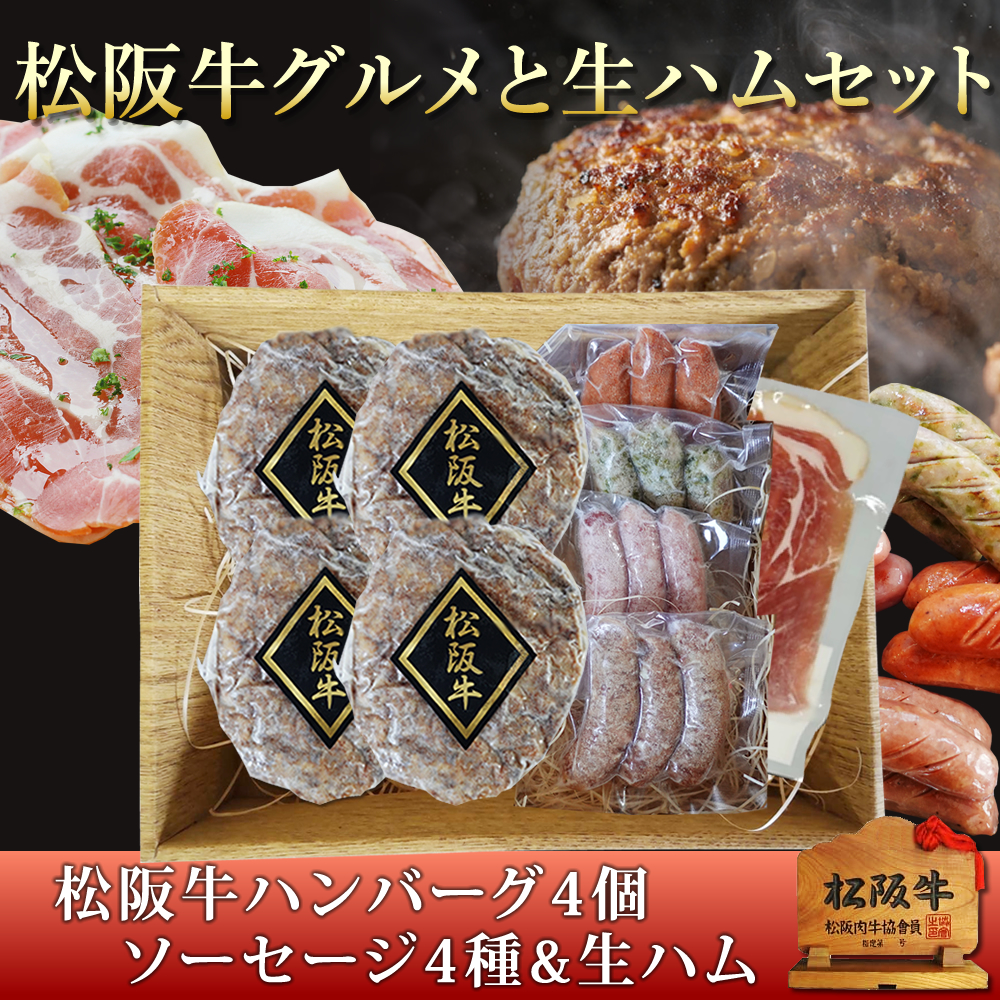 松阪牛ハンバーグ ギフト 内祝い お返し 結婚 グルメ 肉 結婚祝い 出産祝い 松阪牛 松阪牛入りハンバーグ4個 ソーセージ4種 生ハム ボイルするだけ