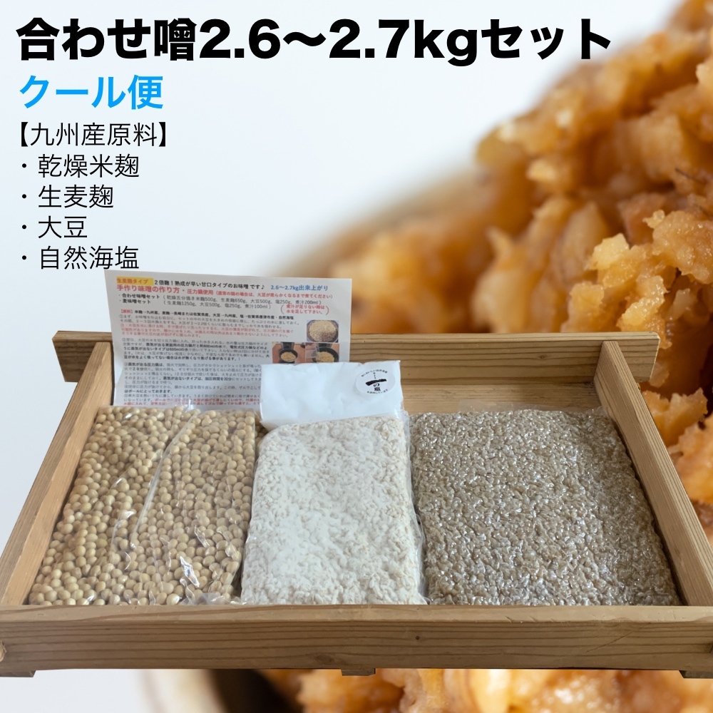 味噌作りセット 合わせ味噌2.6〜2.7kg 2倍麹甘口 手作り味噌セット 味噌作りキット 生麦麹 米麹 大豆 自然海塩 クール便【UP】
