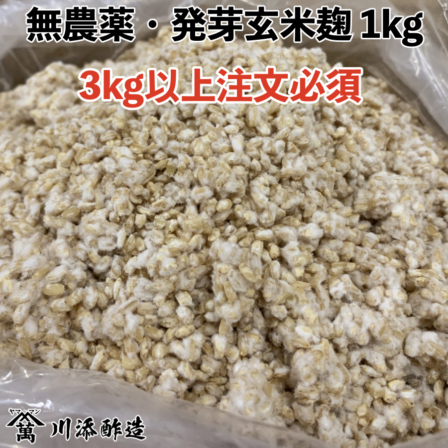 ・足りない場合は、一覧以外から仕入れる場合もあります。これらのお米を、川添酢造で電子エネルギー水(備長炭を電極にして電圧をかけた水)を用いながら洗米し、15時間以上浸漬して安全な発芽玄米にし、昔ながらの木製の室蓋でていねいに玄米麹にしました。とても良い香りの麹になっております。ほぼ全行程を手作業で行っている昔ながらの手作り麹です。名称:無農薬玄米麹(乾燥)1kg(3kg以上購入必須)原材料名 うるち玄米(国産)内容量 1kg賞味期限 約3ヶ月保存方法 直射日光を避け、冷暗所に保存。冷蔵庫又は冷凍庫で保存すると、より状態を保つ事ができます。製造者 川添酢造有限会社長崎県西海市大瀬戸町雪浦下郷1308‐2TEL 0959-22-9305