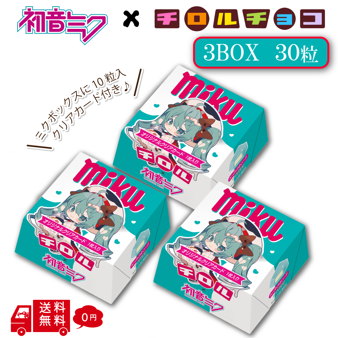 初音ミク チロルチョコ ミクボックス 3BOXセット 1BOX10粒入 30粒 夢ノ内 限定描き下ろし アート使用 おまけ入り チョコレート 駄菓子 お菓子 予約品 ミクの日 ソーダ ミルククリーム クリアカード おまけカード 個包装 コラボ みっくみくみるソーダ チロルミクBOX