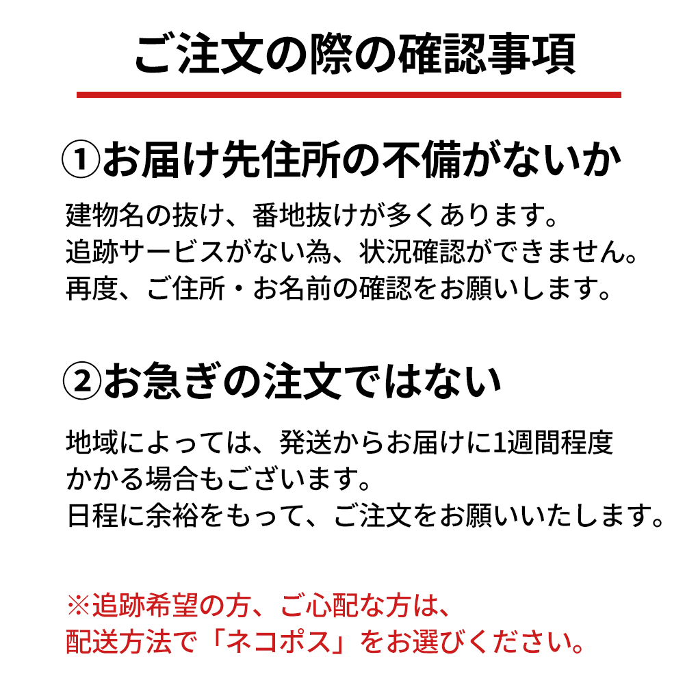| 保存方法 | 高温多湿を避け、涼しい場所(15℃〜18℃が適温)で保存してください。 |