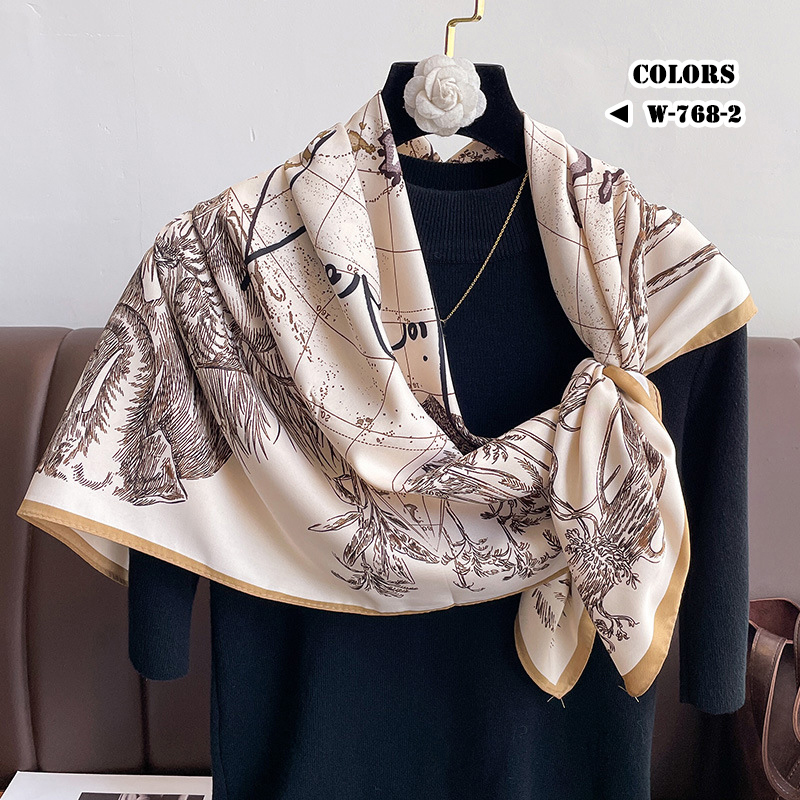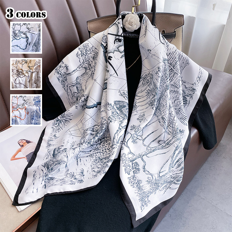スカーフ 大判 正方形 ストール プレゼント ギフト レディース ネックスカーフ バンダナ uv UVカット スカーフ 秋 冬用 春物 上品 大人可愛い おしゃれ W-768