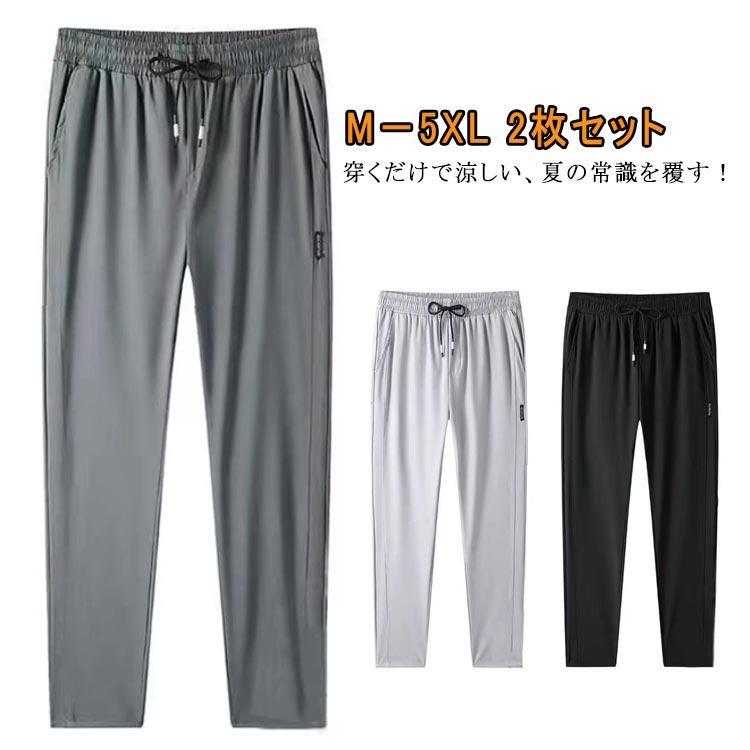 【2枚セット】アイスシルク カジュアルパンツ メンズ 夏 薄手 ボトムス ストレッチ チノパンツ 接触冷感 速乾 カジュアルパンツ 薄手 ゴルフパンツ