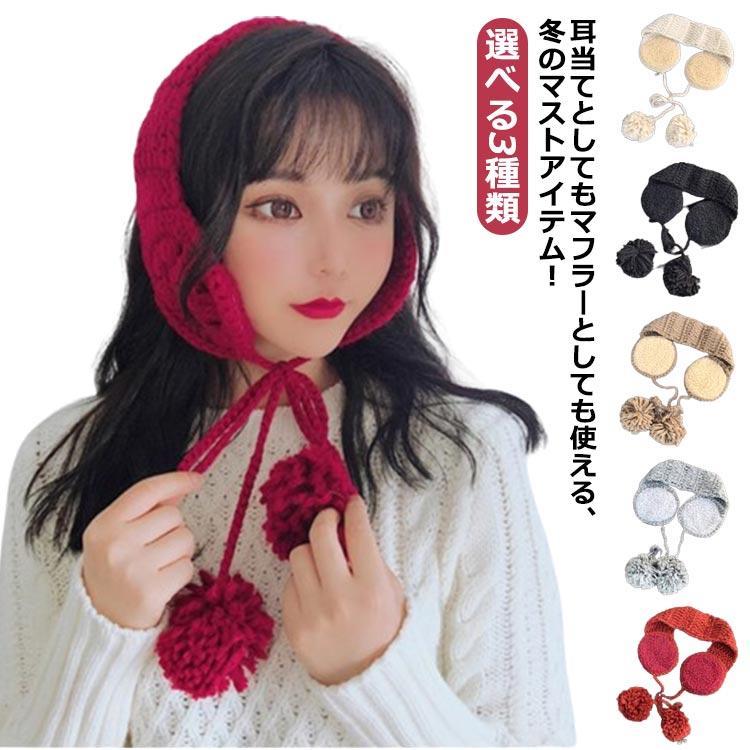 耳あて イヤーウォーマー 耳あて 裏ボア マフラー レディース イヤーマフラー 耳当て ポンポン付き ケーブル編み モコモコ ニット帽 裏起毛 ふわふ