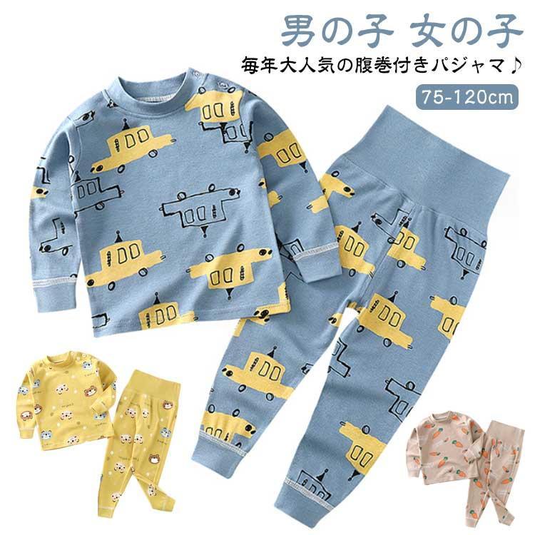 ベビー服 キッズ 部屋着 ルームウェア こども 長袖 腹巻付き 男の子 女の子 パジャマ ジュニア 綿 上下セット 子ども 子供服 パジャマ 総柄 秋