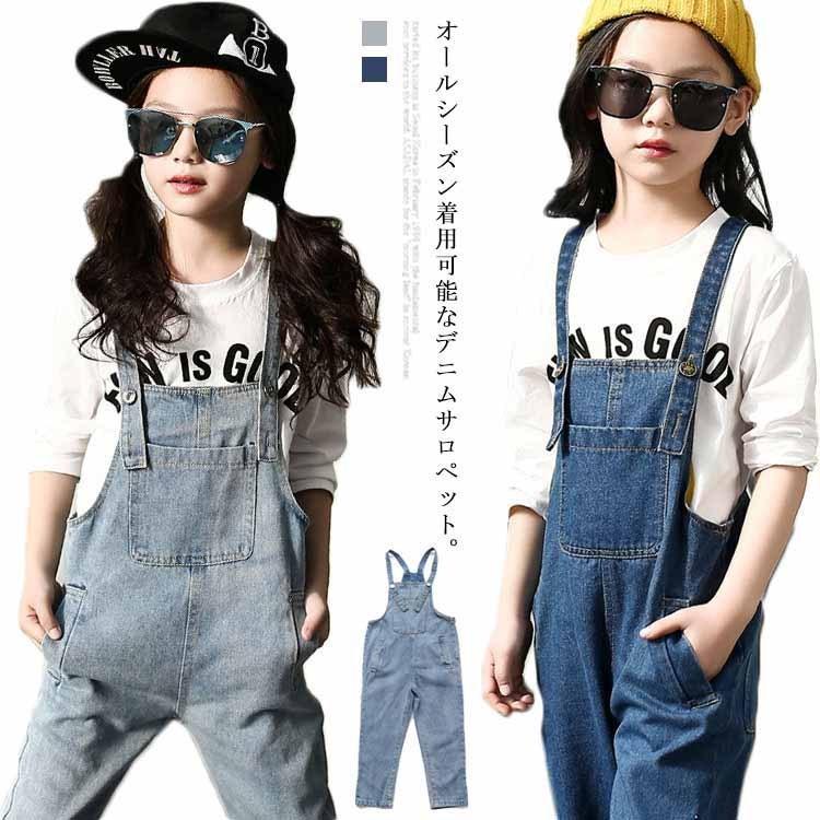 オーバーオール パンツ 子供服 デニム サロペット 女の子 キッズ ジュニア ロングパンツ ロールアップ デニムパンツ ボトムス 長ズボン